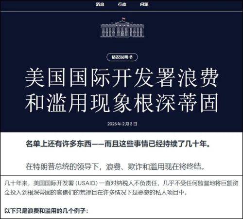 在2月3日,白宫官网还发布了一篇文章,痛斥国际开发署“浪费和滥用现象根深蒂固”,并列出了一部分资助的离谱项目名单,堪称是“某某某几十大罪状”。
