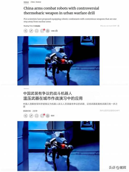 该媒体还认为,这种武器存在着一定的争议,机器狗如果使用这些武器作战的话,实际上距离单兵核武也只有一步之遥了。