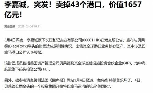 就在所有人都在盯着美国对乌克兰资产的收割的时候,没想到,美国却默默地将手伸向了中国。而且就在刚刚过去不久,就有一笔世纪大交易产生,李嘉诚一口气清空了海外港口业务,而且更是直接卖掉了43个港口。