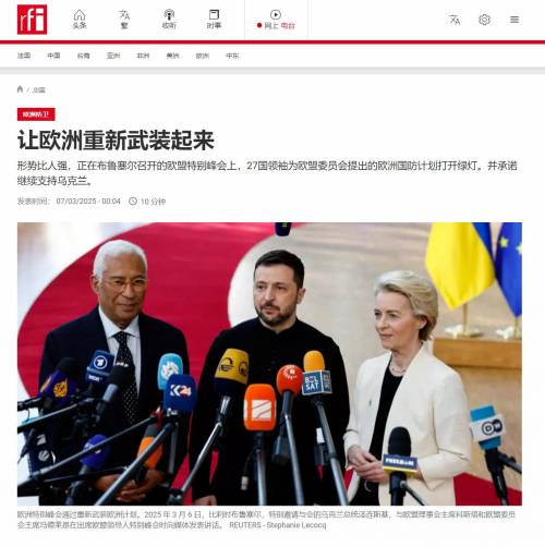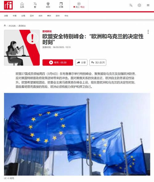 3月6日,欧盟在布鲁塞尔召开特别峰会,27个成员国决议在未来几年内筹集8000亿欧元防务支出计划,以重新武装欧洲对抗俄罗斯的“入侵”。同时欧洲将在2025年向乌克兰提供价值306亿欧元的援助,包括防空系统、导弹以及培训和装备等。