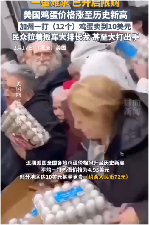 不过到了目前,12只鸡蛋的价格已经狂飙至超过20美元了,即一只鸡蛋的价格都快到12元人民币了。