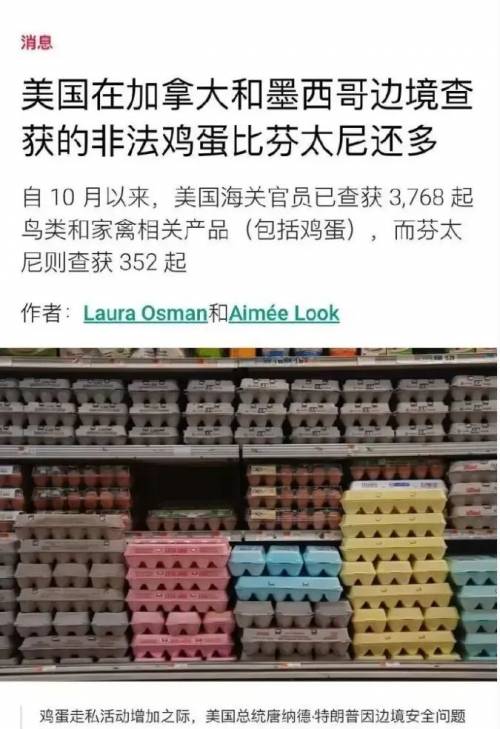 不过,对于美国而言也有好消息,那就是很多美国人从墨西哥、加拿大非法走私鸡蛋到美国,还是在一定程度上缓解了蛋荒问题。
