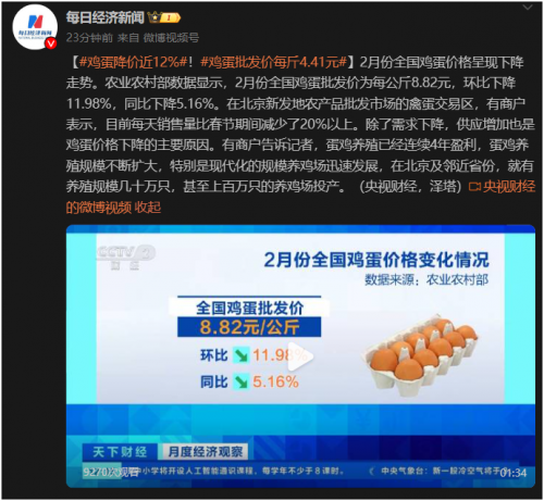 至今年2月底时,美国西部的鸡蛋价格飙升到12只平均批发价格都到了8.41美元(折合人民币约5元/枚),创历史新高。