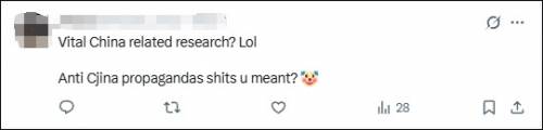 在该所X平台账号转发《华尔街日报》报道的评论区,有人说:“重要的中国相关研究?哈哈哈,你说的是反华宣传吧。”