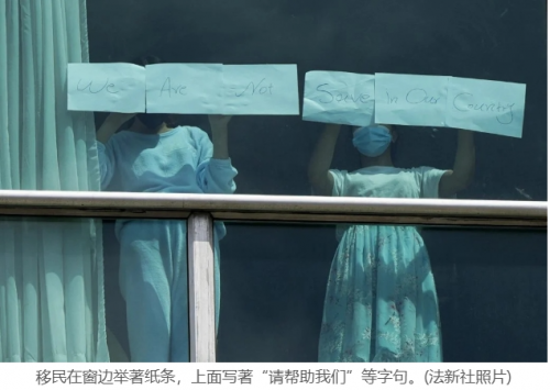 这些润人不愿意就这样被遣返回国,为了寻求外界的帮助,润人们在窗边举着纸板哭喊求救,上面写着 “救救我” 和 “我们在自己的国家并不安全” 等字样。