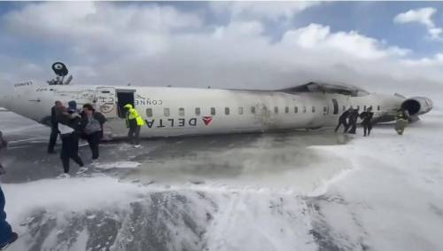 达美航空一架客机在多伦多机场坠毁并翻转,所幸无人死亡。机上80名乘客和机组人员在事故中表现冷静,有序撤离。