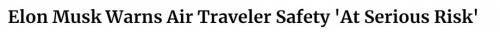 其实就在坠机事件发生的前几天,马斯克刚刚发出警告,美国可能出现严重空难,谨慎坐飞机!