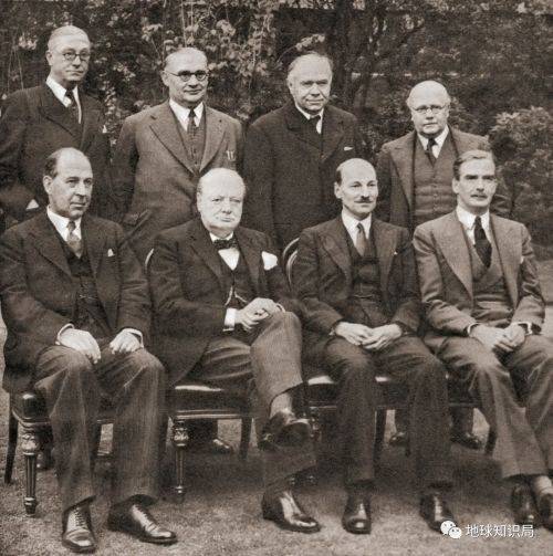 温斯顿·丘吉尔(左二),克莱门特·艾德礼(右二)