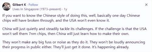 但我们相信,中国也一定会接着克服接下来的种种困难,成为一个任何国家都不在能封锁的科技强国。