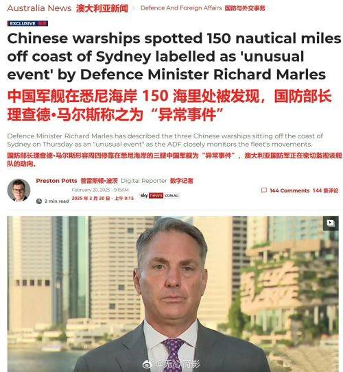 “正如北京上周在新南威尔士州海岸进行的军舰实弹演习所提醒我们的那样,澳大利亚对中国毫无胜算。”澳大利亚电视名人艾伦·科勒写道。澳大利亚人一夜之间意识到,中澳两国海军在军舰方面的实力对比为234比16——让这帮装睡的人睁眼,真的太不容易了。
