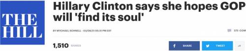 《国会山报》:希拉里·克林顿称她希望共和党能“找到自己的灵魂”