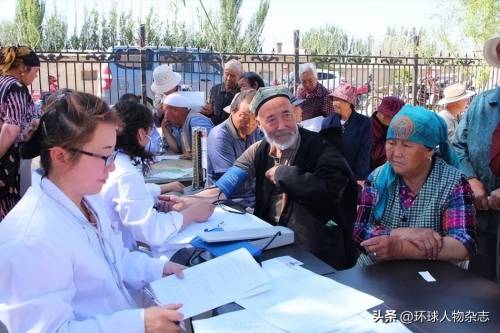 郑国恩还擅长看图瞎编。他曾拿出一张照片,说新疆农村维吾尔族居民在诊所接受“强制性节育”,这是中国在“不遗余力实施人口控制”。但实际上,在这张照片中,新疆生产建设兵团正参与扶贫工作,医生们正为村民测量血压、血糖、心电图,并当场发放常用药品。
