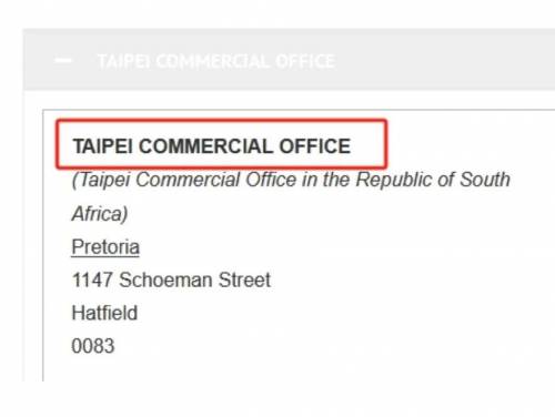 (南非外交部将“台北联络代表处”改名为“台北商务办事处”)