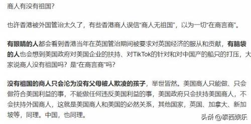 梁振英指出,有些香港商人误信“商人无祖国”,以为一切“在商言商”,但实际上是,没有祖国的商人只会沦落为没有父母被人欺凌的孩子。