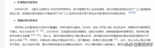 另外,他还很反对中医,直接称中医阴阳五行理论为伪科学。他认为中国传统文化90%是糟粕,还以中医为典型案例。