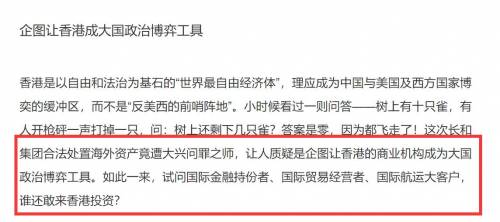 联合早报认为:“《大公报》署名文章罔顾《基本法》相关规定,无视香港一国两制环境,竟然对一家历史悠久、拥有众多海内外股东的上市公司受《基本法》保护的私人和法人财产的处置、交易“乱抓辫子,乱扣帽子,乱打棍子”,这种赤的政治绑架、道德绑架在理论上是荒的,在法律上是违背的,在影响上是恶劣的。”