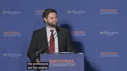 2021年11月,万斯出席美国全国保守主义会议时引用尼克松说“教授是敌人”,台下掌声雷动 截图