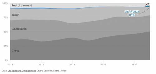▲到2023年,中国建造的商船吨位已占到全球50%,美国则为0.1%。(图源:美媒Axios)