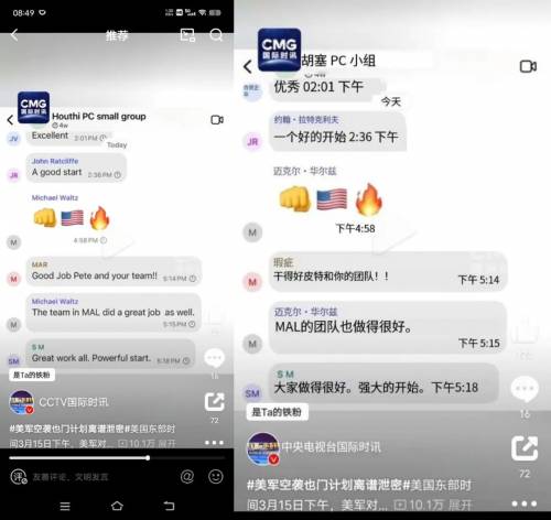而在美军开始轰炸也门之后,华尔兹通报了行动,称“一项了不起的工作”,拉特克利夫回复“一个好的开始”,鲁比奥说“干得好,皮特和你的团队!!”其它成员均发言表示祝贺。