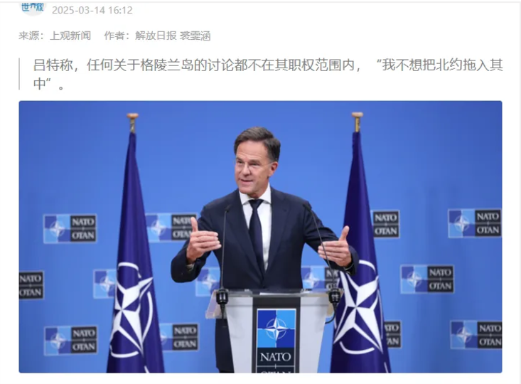 事后,吕特确实是在回应记者的提问时,公开表达了他不敢说这个事,甚至说美国吞并格陵兰岛不在他的职权范围内,他管不了。