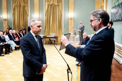 3月14日,加拿大渥太华,新当选的加拿大执政党自由党党首马克·卡尼宣誓就职。图/IC