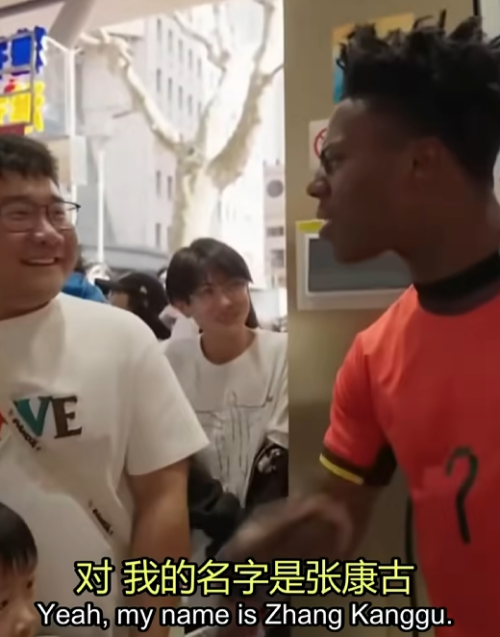 路边遇到的粉丝,激动大喊甲亢哥!他以为自己中文名叫张康谷,嘴里反复念叨,认真记下了自己的中文名。。