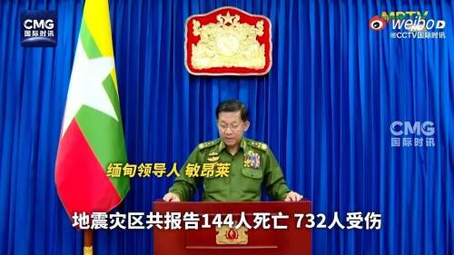 稍后,北京时间凌晨1点左右,央视国际时讯报道称,缅甸领导人敏昂莱发表讲话说,地震中已经有144人死亡,732人受伤。敏昂莱同时呼吁各国、各组织和民众对缅甸地震灾区提供援助。