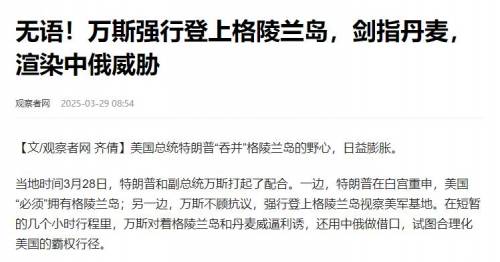 3月28日,美国副总统万斯不请自来,就带着老婆和一堆高官,大摇大摆地降落在格陵兰岛。