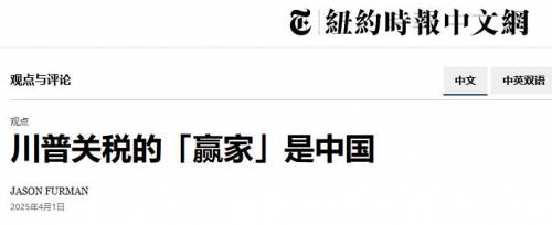 美国4月2日“对等关税”的最大赢家是谁?《纽约时报》发布了一篇专栏文章认为,特朗普关税战的最大赢家,竟然是中国。