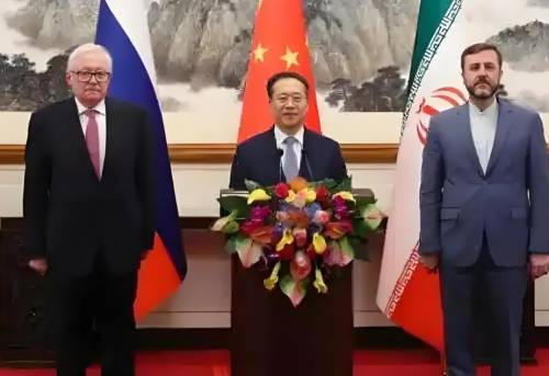 结果,却被中国给破局了,中国拉着俄罗斯和伊朗,在北京开谈“伊核问题”。潜台词就是,你美国想逼降伊朗?想也不要想,俄罗斯和中国站在伊朗背后!