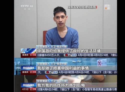 在国安机关披露的审讯画面中,其中一名菲律宾间谍大卫·斯皮内斯也承认他对自己的所作所为感到后悔,表示中国政府为他提供了良好生活环境,自己却做了损害中国利益的事情。