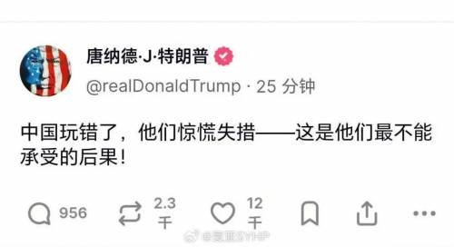 三是中国的强势反击让特朗普心态崩了。特朗普竟然在X上发帖说:中国玩错了,他们惊慌失措——这是他们最不能承受的后果!