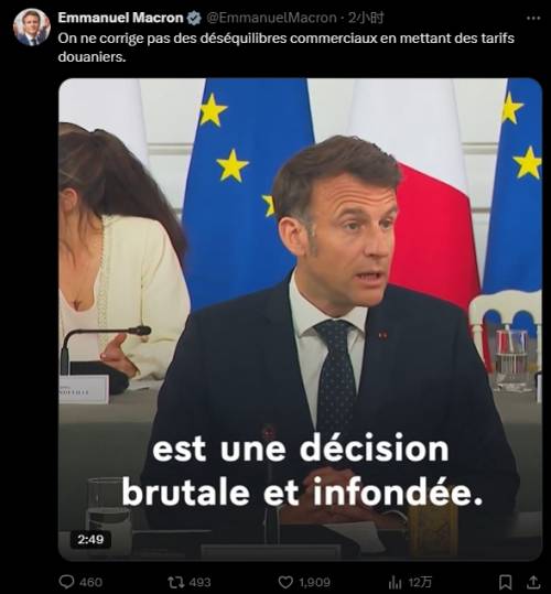 在美国总统特朗普宣布对欧盟加征20%高额“对等关税”后,法国总统马克龙呼吁欧盟企业停止“对美天真”,暂停在美国投资。