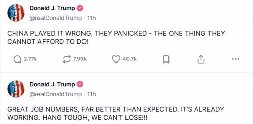 在中国祭出合理反制措施后,他还大呼小叫道,“中国做错了,他们慌了——(这些关税)是他们无法承受的。”