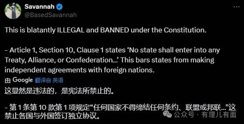 其实,加州能不能绕过联邦签协议,法律上确实存疑。美国宪法明确规定,外交权归联邦政府所有,各州无权与外国缔约。