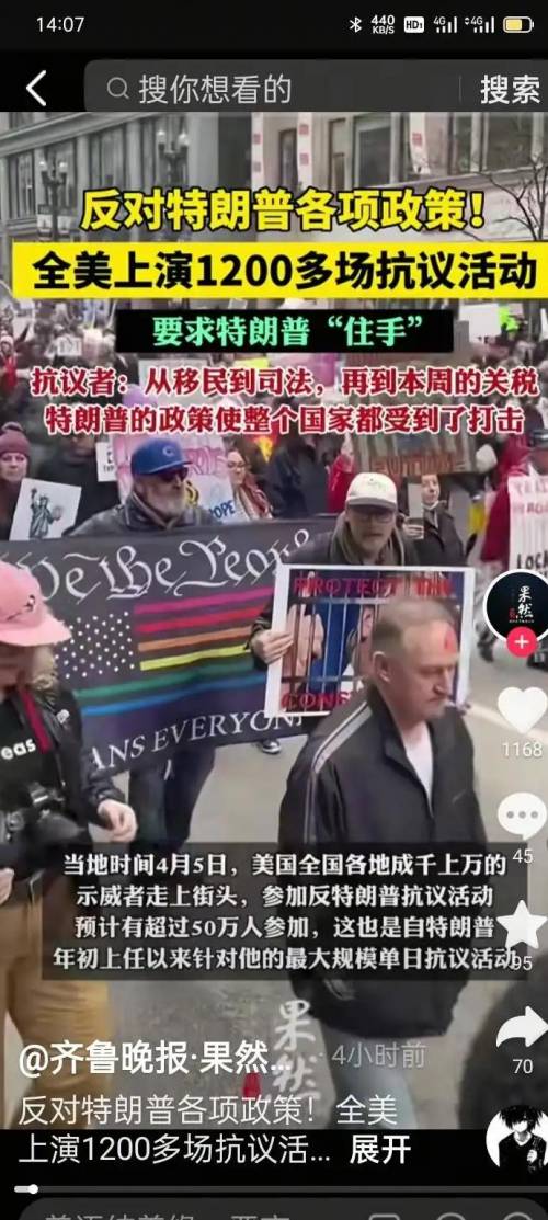 抗议者们举着牌子,喊着口号,充分表达了他们对特朗普政府各项政策的强烈不满与失望。人们聚集在一起,用行动表达自己的声音。