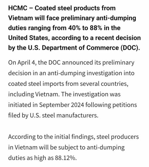 美国对全球100多个国家发动关税战,越南光速滑跪,没有换来美国的妥协,特朗普顾问表示:远远不够,美国商务部将对越南镀锌钢产品征收初步反倾销税,税率从40%到88.12%不等。