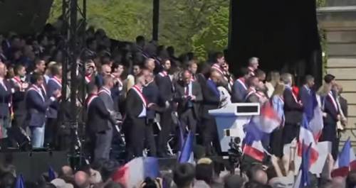 勒庞的支持者参加巴黎沃邦广场集会。 视频截图