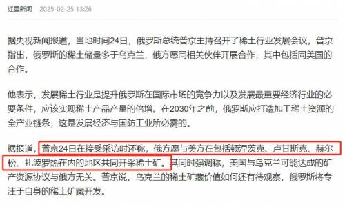 在之后美国很可能与俄罗斯达成开发合作,前段时间,普京称在媒体前表示愿意与美国共同开发稀土矿产,普京的意思特朗普非常明白,只要解决俄乌冲突美国就有机会与俄罗斯进行合作,这样既可以恢复美国的经济,还能极大地缓和与俄罗斯的紧张关系一举两得。