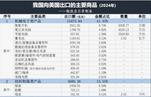 2024年,我国向美国出口的纺织鞋类产品出口额达到4686.26亿元,占总出口额12.55%,位列我国向美国出口商品大类中的第二。