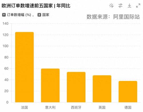 关税大浪之下,欧洲市场快速崛起,一跃成为外贸商家的新增长点。「市象」关注到,有消息称,全球B2B跨境电商平台阿里国际站3月份在欧洲的订单量出现暴增,尤其是法国的增速达到125%,平台内部有说法:“法国涨到无法归因”。