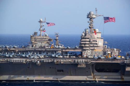 伊朗也不示弱,接连公布了几个“地下导弹库”。与此同时,中俄伊三国先是于3月份在中国开了三方会谈,前不久又在莫斯科开了三方磋商,讨论伊核协议问题的解决。期间,中俄伊还举行了例行海上联合演习。也算是提前预判了,特朗普势必要在中东搞出动静。