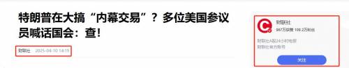 特朗普的这一系列操作,令外界怀疑其在大搞“内幕交易”,有美国参议员甚至直接喊话国会,要求针对特朗普是否参与了内幕交易或市场操纵展开调查。