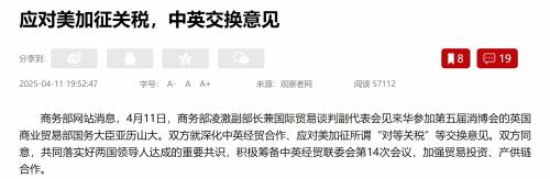 本周五,中国商务部副部长在华会见了英国商业贸易部国务大臣,双方重点谈到了强化中英经贸关系,以及应对美国“对等关税”等议题,双方还同意加强贸易投资和产供链合作。