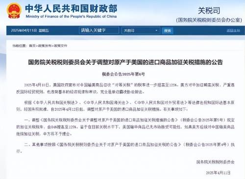 事情的根源还是在特朗普身上,老是想着搞关税,完全不顾民众的死活,但面对他们的步步逼近,我国也不是好欺负的,在美国对我国恶意加征关税后,中国国务院关税税则委员会宣布,对所有美国商品加征125%的关税。