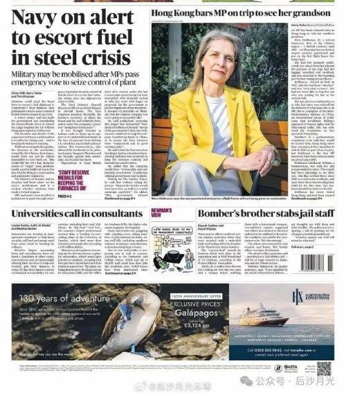 4月13日,英国《星期日泰晤士报》头版新闻: