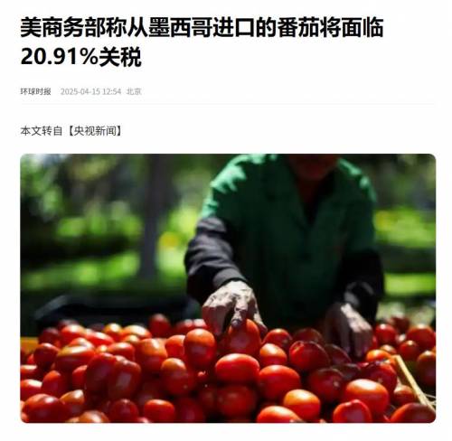 所以从7.14日起,从墨西哥进口道美国的番茄将会面临20.91%关税.......