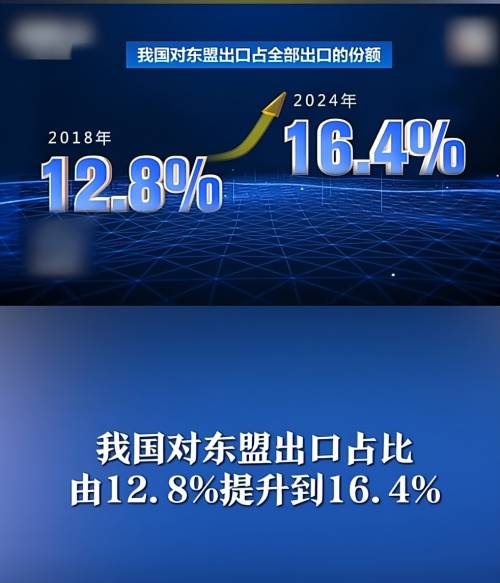 除了对东盟的出口份额从原本的12.8%增加到了16.4%外,中方共建一带一路国家的出口也从原本的38%涨到了近50%!