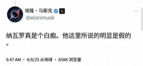 为了宣泄自己的不满,马斯克多次在社媒上直接抨击首席贸易顾问纳瓦罗,甚至直接称呼对方“baichi”,此外他对于副总统万斯的批评也毫不留情。