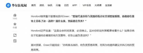 美国贸易代表格里尔在国会听证会上被民主党议员霍斯福德质问:“所以贸易代表没有与美国总统就全球贸易重组进行交谈,但他却在推特上宣布了它?”